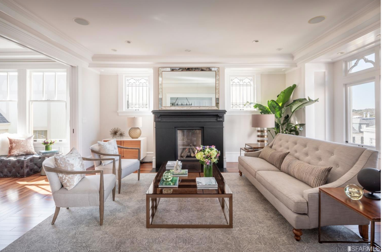 Perched above San Francisco’s coveted Presidio Heights neighborhood, this stunning house-like condominium masterfully blends historic architectural design elements such as wainscoting, beveled glass and gorgeous Tudor Revival-style windows with a clean modern palette. Upon entering, you’re welcomed by a spacious foyer which connects the formal living and dining rooms. The adjacent kitchen offers custom floor-to-ceiling cabinetry, high-end SubZero and Miele appliances, a Marvel 52-bottle wine fridge, pantry with a washer and dryer and more— it is a true chef’s kitchen. The master suite offers custom built-ins and a window bench with stunning outlooks and seamlessly connects to a master bathroom complete with WaterWorks fixtures and radiant floor heating.